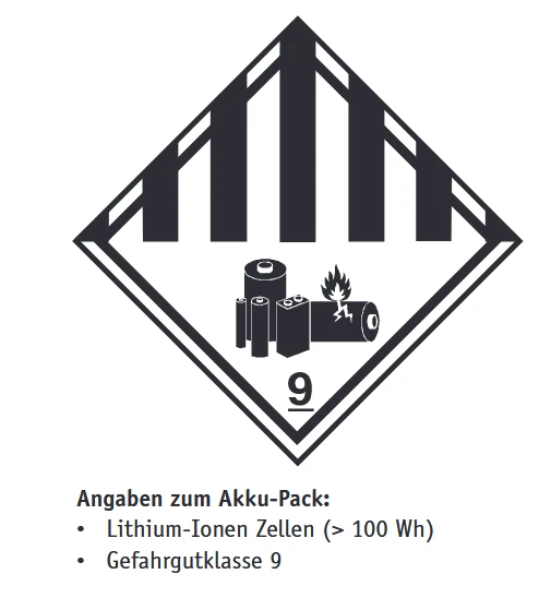- Im (unwahrscheinlichen) Fall einer Überhitzung oder Brandes des Akku-Packs darf dieser unter keinen Umständen mit Wasser oder sonstigen Flüssigkeiten in Kontakt kommen. Als einzig sinnvolles Löschmittel empfehlen die Zellenhersteller das Löschen mit Sand.