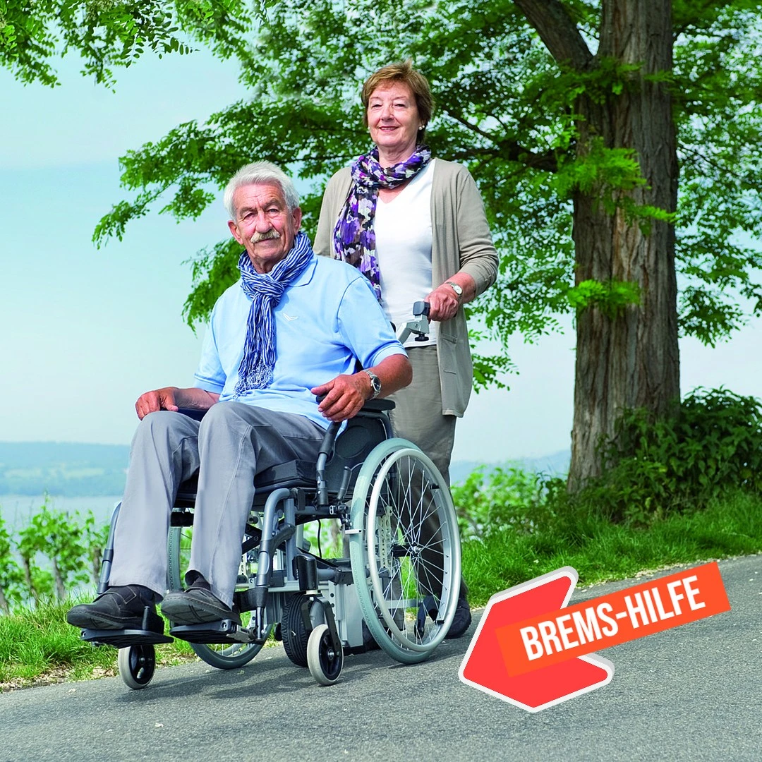 - Der Motor bewegt den Rollstuhl und bremst ihn auch ab. Das erhöht die Sicherheit auch bei starkem Gefälle.