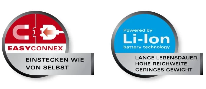 - Der kompakte Akku-Pack ermöglicht einen Aktionsradius von bis zu 20 km!