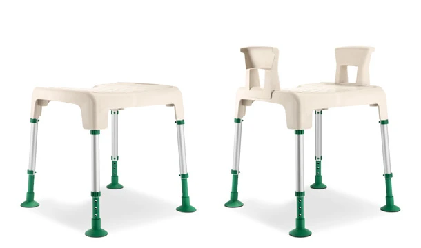 - Vom Duschstuhl zum Duschhocker: Sowohl die Rückenlehne als auch die Armlehnen lassen sich einfach abnehmen und wieder aufstecken.
