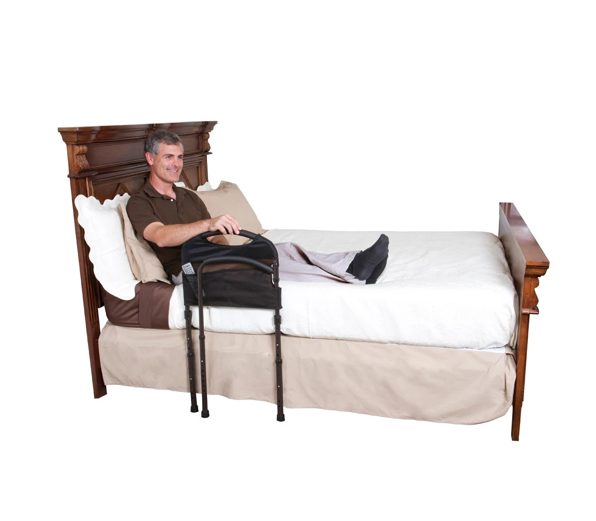 - Der Mobi-Rail Bettgriff gibt Ihnen beim Aufstehen aus dem Bett Halt, da er mit zwei Standbeinen und einem Ausstellarm auf dem Boden steht und Sie stützen kann.