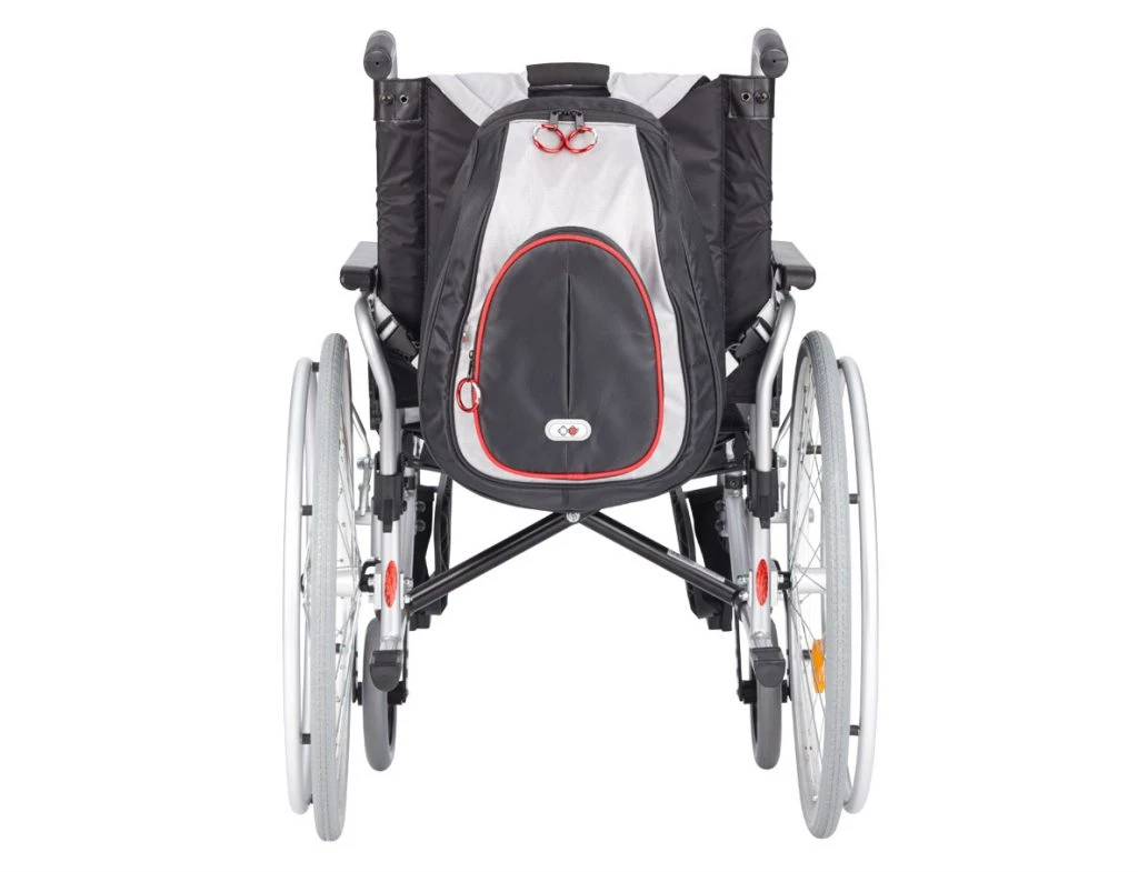 - Der Backpack lässt sich dank der weichen Polsterung bequem auf dem Rücken tragen und ebenso leicht an jeden handelsüblichen Rollstuhl anhängen.