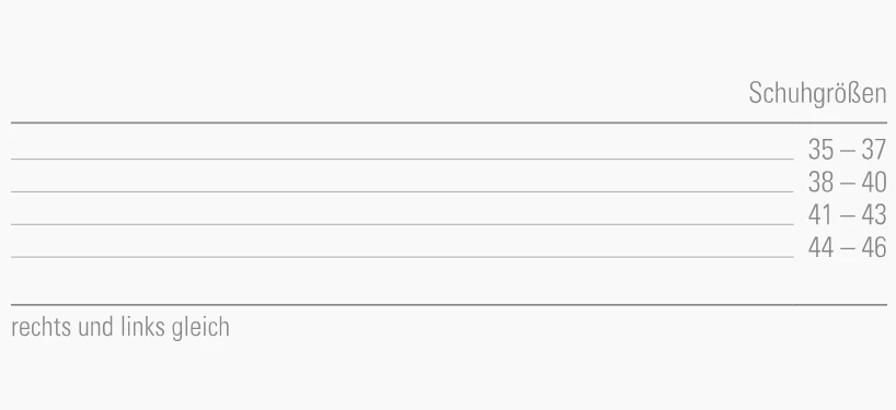 - Die Belastung des Körpergewichts beim Gehen verteilt sich durch die Aussparung im Fußbett nur auf den Bereich vom Vorfuß zur Mitte des Längsgewölbes.