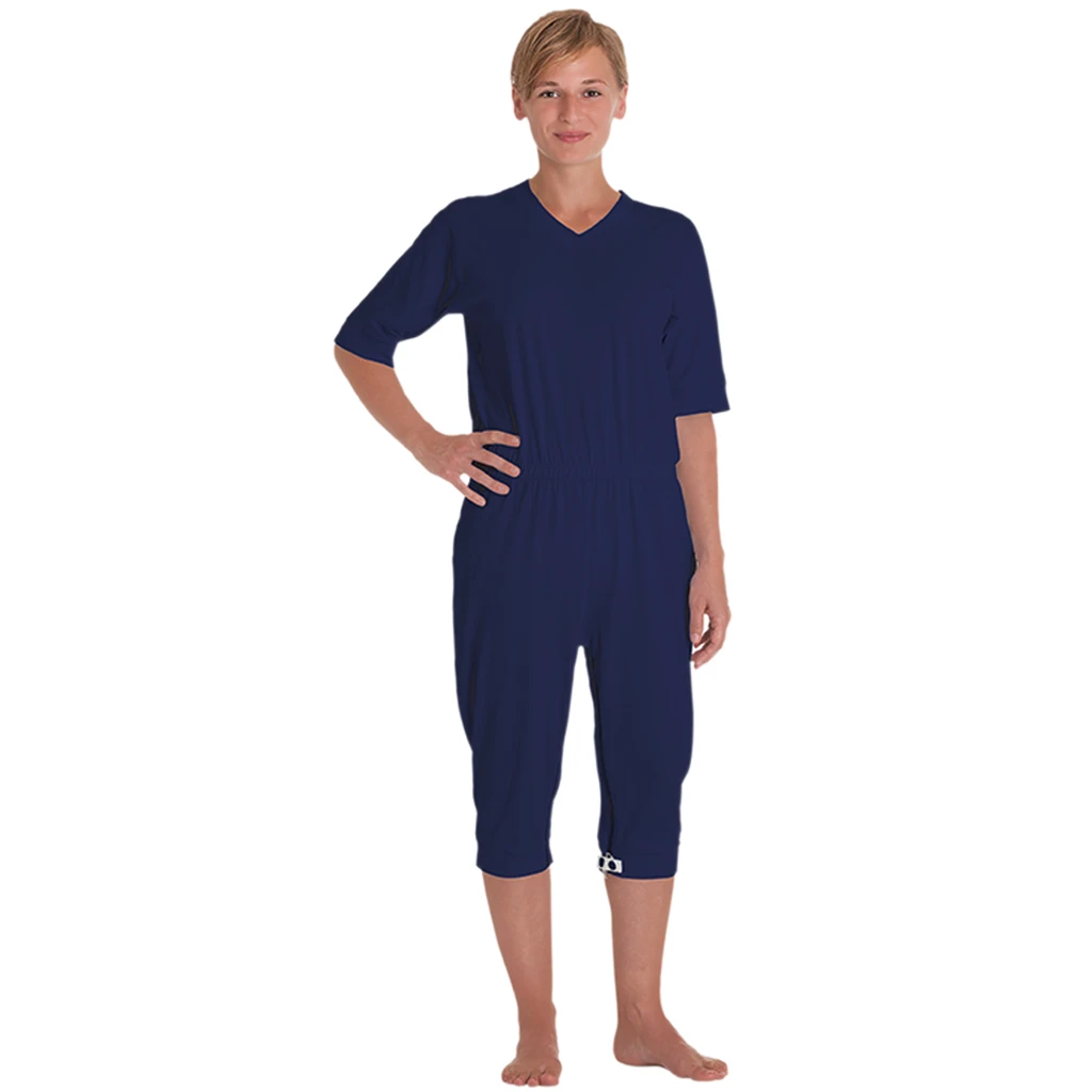Höchst funktional und effizient – der suprima CareFunction Pflegeoverall mit kurzen Armen und Beinen eignet sich besonders für demenziell erkrankte Personen, die an Inkontinenzerscheinungen leiden. Durch eine Sicherung am teilbaren Beinreißverschluss wird die Selbstentkleidung durch den Patienten und somit der Zugriff auf Windel- und Inkontinenzmaterialien nahezu verhindert. Für Pflegende wird der Austausch von Inkontinenzmaterialen vereinfacht, und ein vollständiges Entkleiden entfällt. Ein diagonal verlaufender Rückenreißverschluss beugt Druckstellen an der Wirbelsäule vor. Das weiche und hautfreundliche Material sorgt für höchsten Tragekomfort. Der Pflegeoverall mit kurzen Armen und Beinen ist in einem klassischen Dunkelblau erhältlich und gleichermaßen für Männer und Frauen geeignet.