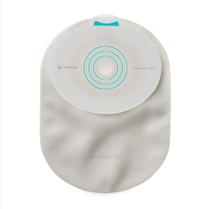 Bei der einteiligen SenSura Mio Kolostomieversorgung ist der Stomabeutel fest mit dem elastischen Hautschutz verbunden. Beim Beutelwechsel wird die komplette Versorgung abgenommen und durch eine neue ersetzt. Die 1-teilige SenSura Mio Kolostomieversorgung ist mit einer breiten Auswahl an planen Basisplatten mit vorgestanzter oder ausschneidbarer Lochgröße erhältlich. Die Beutel sind in transparent oder lichtgrau mit Sichtfenster in verschiedenen Größen erhältlich.