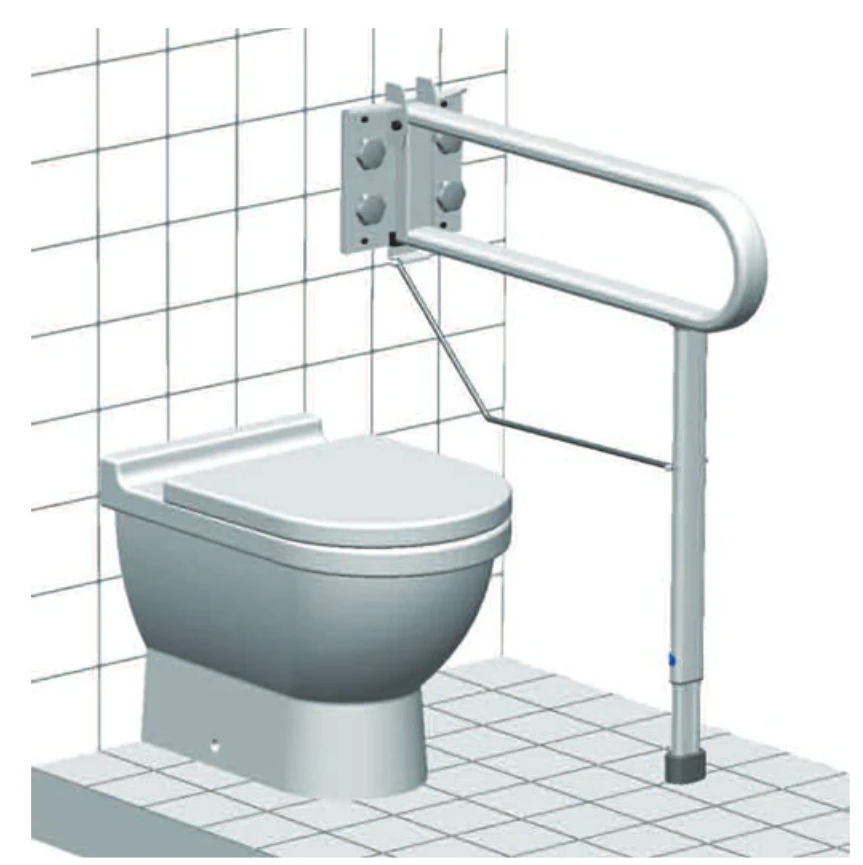 - Der variopresa Schwenkstützgriff wird an der Wand der Toilette montiert