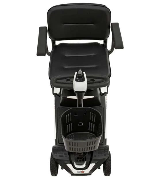 Komfort wird beim CENTURO MINI groß geschrieben. Der bequem gepolsterte, höhenverstellbare Stadionsitz mit abschwenkbaren Armlehnen lässt sich für den unkomplizierten Ein- und Ausstieg drehen. Die rutschfeste Bodenplatte des Eletromobils bietet sicheren Halt für Ihre Beine. Über den ergonomisch geformten Lenker mit LED-Display lassen sich alle Bedienungselemente steuern. Für eine angenehme Körperhaltung justieren Sie die verstellbare Lenksäule im gewünschten Winkel. Am USB-Port können Sie Ihr Smartphone oder andere mobile Endgeräte aufladen. Für Ihre Einkäufe befindet sich vorne an der Lenksäule ein geräumiger Einkaufskorb. - Puristisches Design