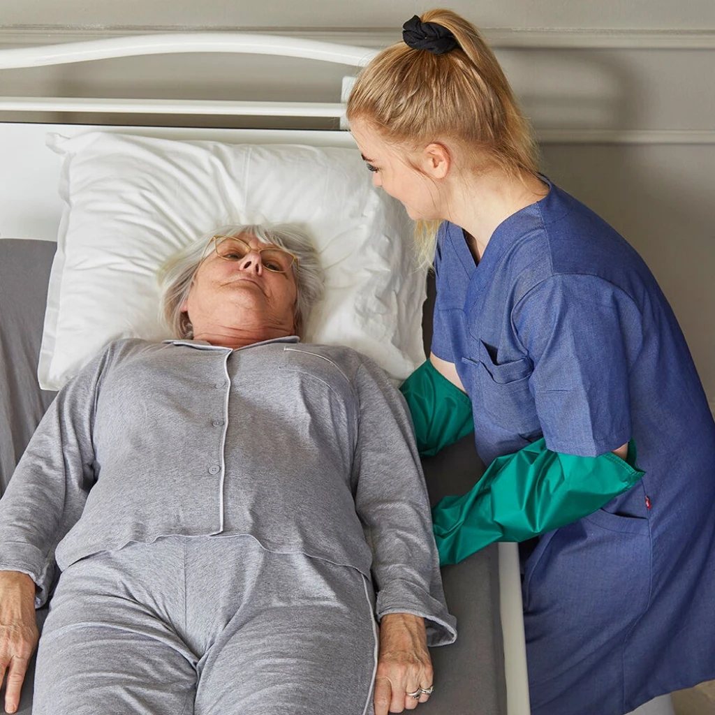 Das Design des Handschuhs ermöglicht es, den Griff zu verbessern und gleichzeitig die Belastung auf die Hand des Pflegepersonals zu reduzieren. Der Gleithandschuh kann auch dazu beitragen, die Hautintegrität des Patienten zu erhalten, da er Reibung und Scherkräfte minimiert, die zu Hautirritationen oder Schürfwunden führen können.