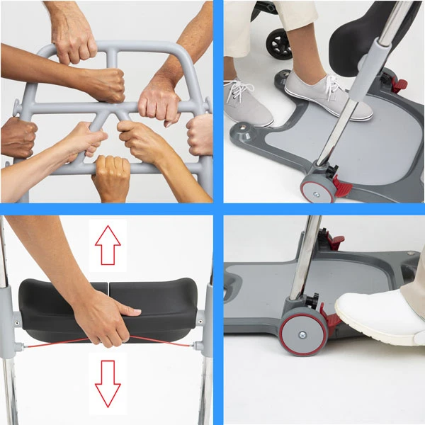 Ein zentraler Mechanismus macht das Bremsen für die Pflegekraft bequem. Wenn Sie auf einer Seite einen Fuß berühren, erhalten Sie bei Aktivierung eine akustische Rückmeldung. Sicher und effizient. - Einhandeinstellung