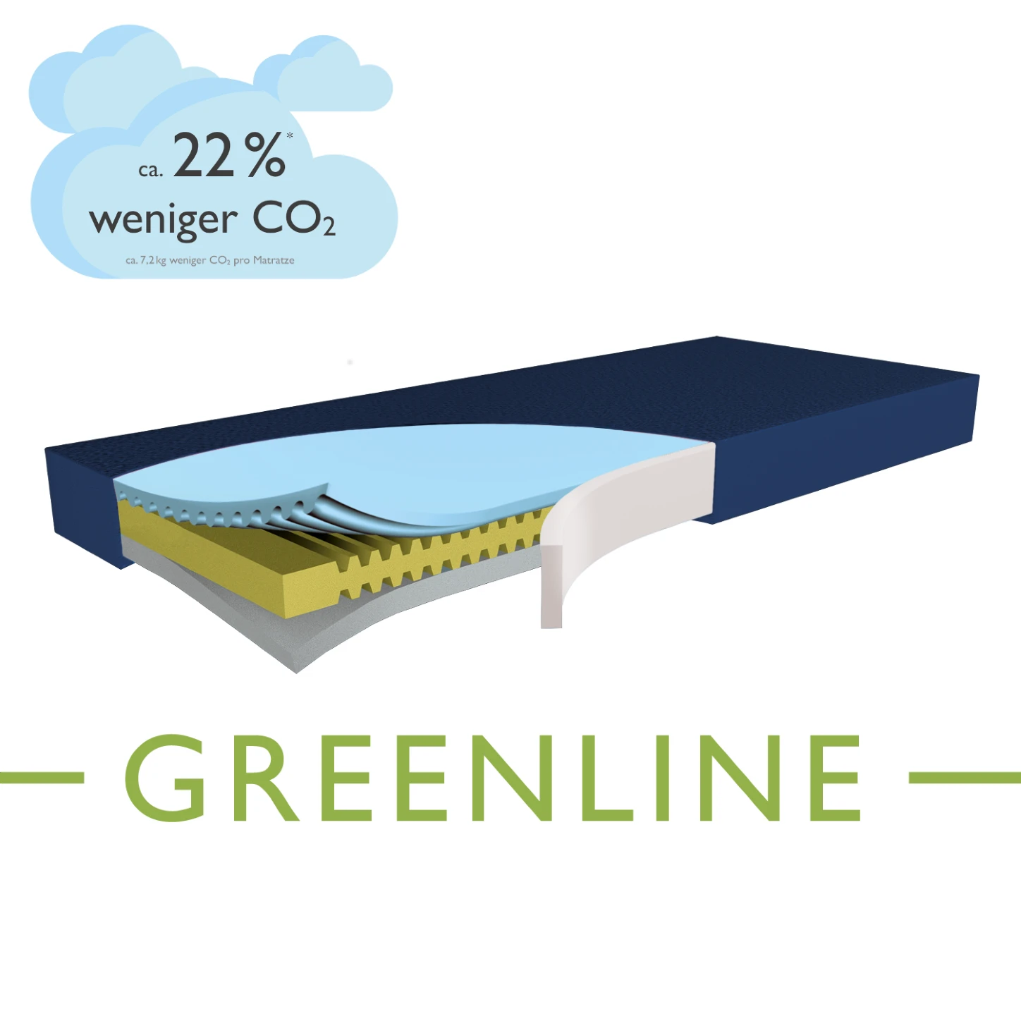 Die GREENLINE-Matratzen werden aus E C OL A S T ® -Schaum hergestellt und haben im Vergleich