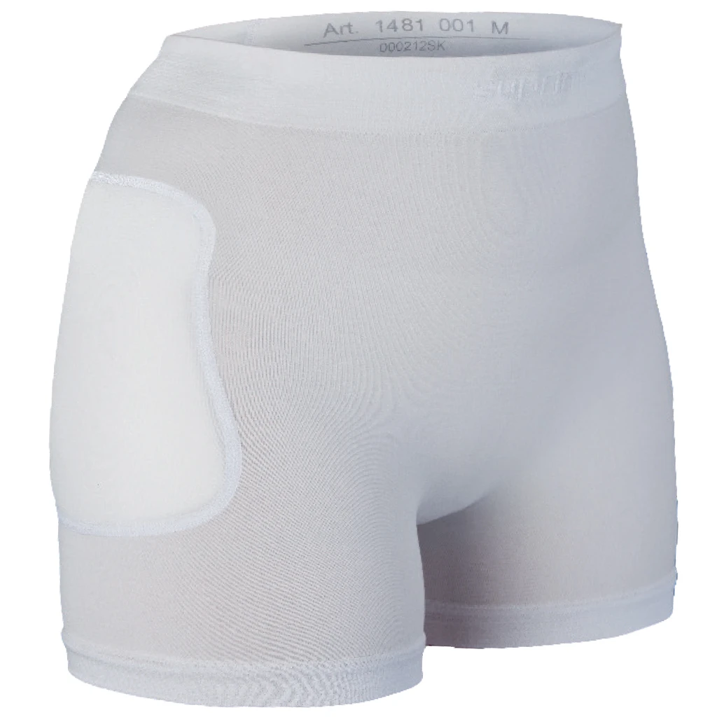 - Daher wird für Sturzgefährdeten Personen angeraten einen Slip mit Hüftprotektoren zur Reduzierung von Sturzverletzungen zu tragen.