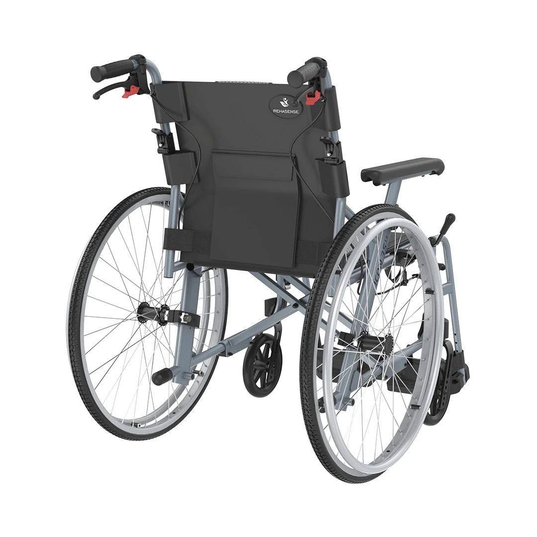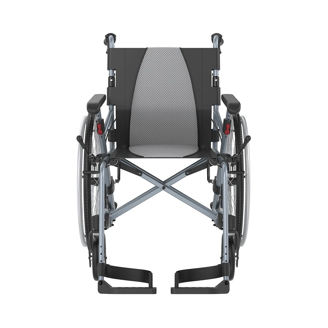 Transportrollstuhl SB 45cm, SH45cm, ST 40cm, Eisblau, 22“ PU Rad, 7“ Vorderrad, Verstellbare Armlehne