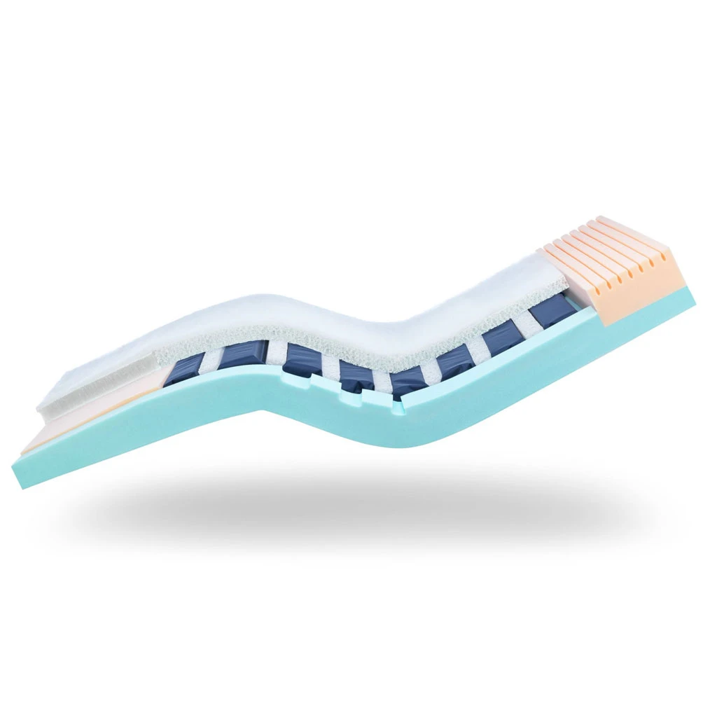 Die Schicht der einzigartigen, nudelförmigen Struktur zwischen der Komfortschicht und der selbstregulierenden Luftzellen bietet die nötige Unterstützung und optimiert gleichzeitig das Mikroklimas