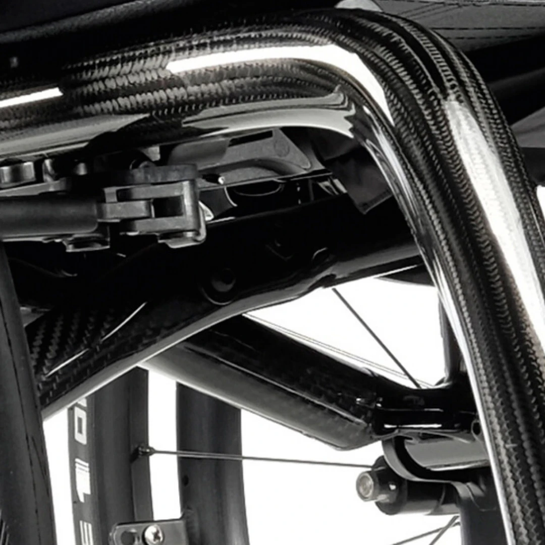 Um dieses Ziel eines anpassbaren, ultraleichten und voll einstellbaren Rollstuhls zu verwirklichen, haben die Sopur Ingenieure bei der Entwicklung mit einem weißen Blatt Papier begonnen und schnell festgestellt, dass nur ein Material die Anforderungen an Fahrleistung und Gewicht erfüllen kann: Höchstfestes Carbon – hergestellt im innovativen, nahtlosen BRAID-Verfahren.