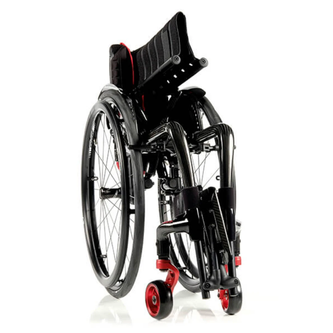 * Gewichtskonfiguration: SB 36 cm, ST 40 cm, mit dünnem Seitenteil aus Carbon und superleichter Bespannung, einer leichten und kompakten Bremse sowie Carbon-Rücken ohne Schiebegriffe.
