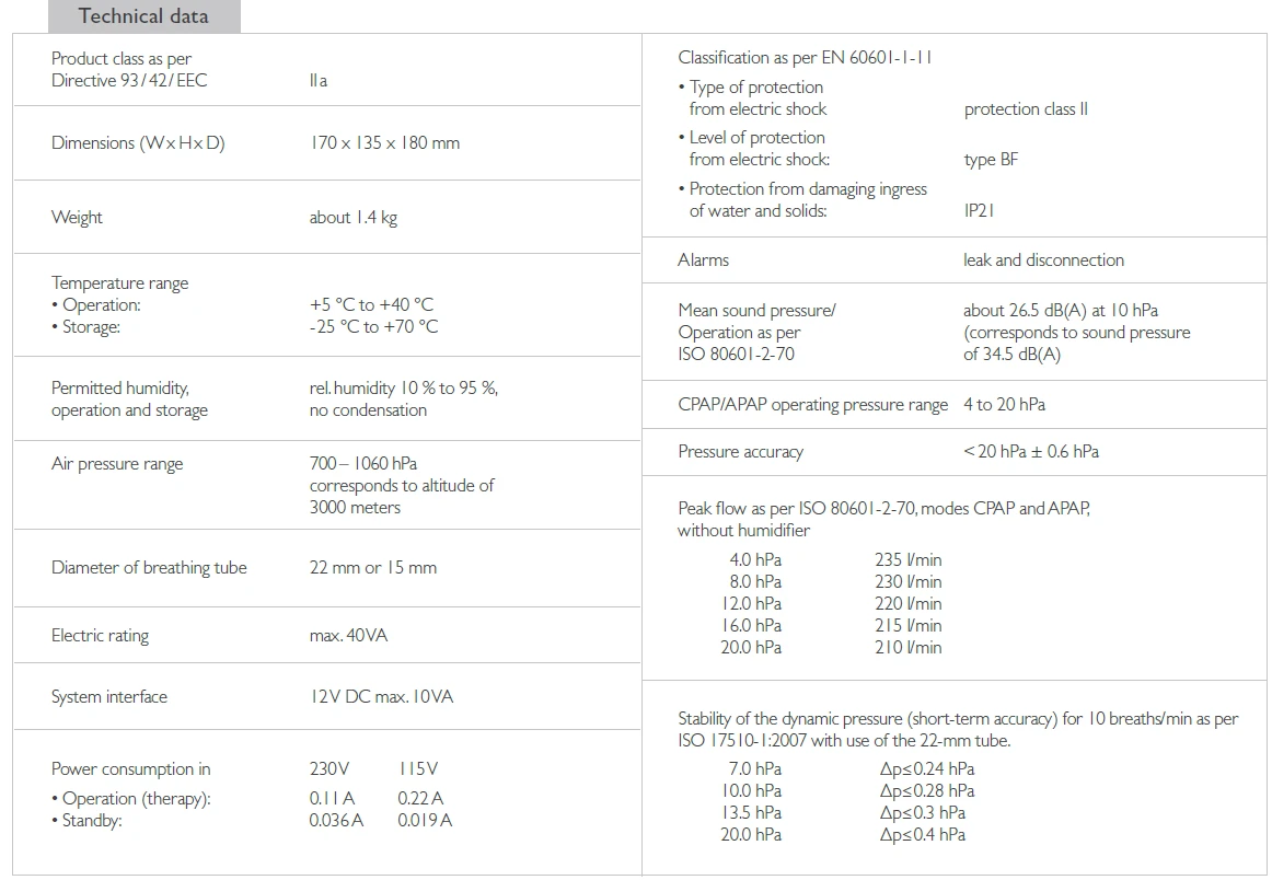 - Hohe Compliance: Dank Komfort-Funktionen wie softSTART, autoSTART-STOP sowie kontinuierlichem Masken- und Therapiefeedback