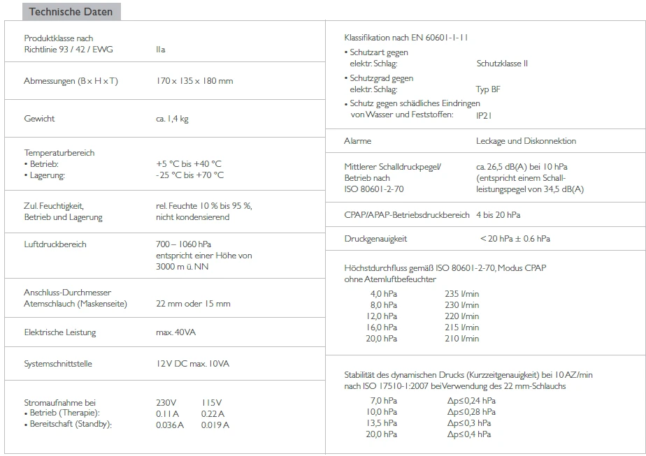 - Hohe Compliance: Dank Komfort-Funktionen wie softSTART, autoSTART-STOP sowie kontinuierlichem Masken- und Therapiefeedback