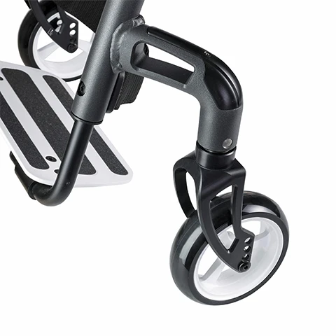- Durch den abklappbaren Rücken und die abnehmbaren Antriebsräder wird Ihnen der Transport erleichtert.