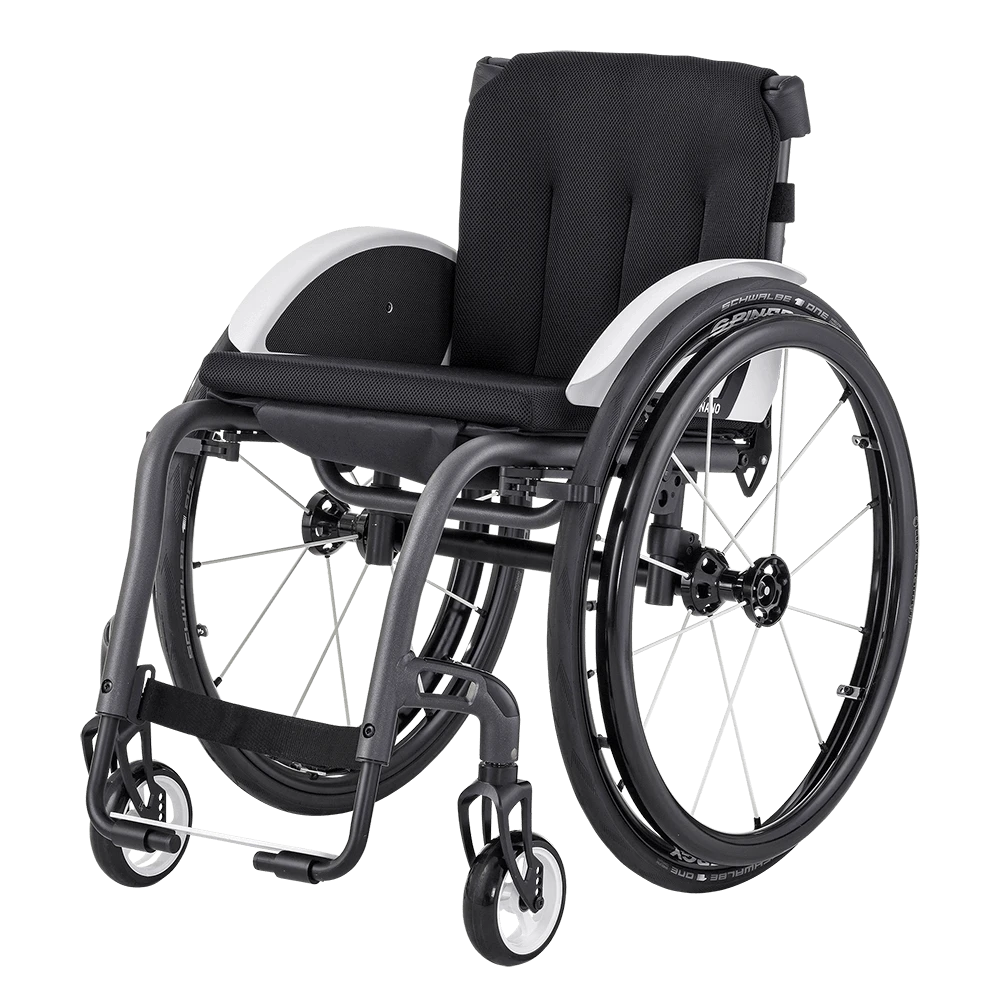 Der Nano Aktivrollstuhl der Firma Meyra. Ein Starrrahmenrollstuhl mit offenem Rahmenkonzept – stylisch, sportlich, kompakt. Höchste Stabilität bei geringem Eigengewicht. Durch seine umklappbare Rückenlehne, steckbaren Seitenteile und abnehmbaren Antriebsrädern findet der kompakte Rahmen nahezu überall Platz.