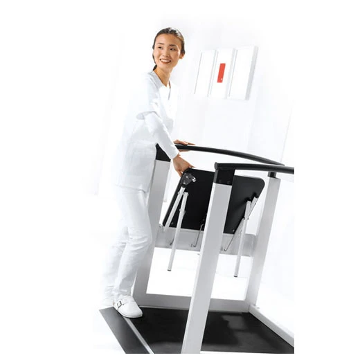 - Eine Barriere für die Vorderräder des Rollstuhls sorgt zusätzlich für Sicherheit für das problemlose Befahren der Multifunktions- und Rollstuhlwaage Seca 685