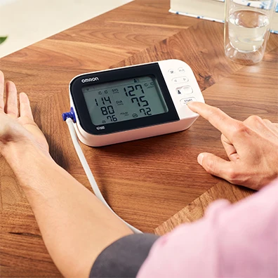 - Halten Sie die Taste START 2 Sekunden lang gedrückt. Das Gerät misst den Blutdruck und erkennt AFib mit hoher Spezifität und Empfindlichkeit.