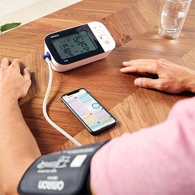 Die App OMRON connect übermittelt die neuesten Messergebnisse automatisch an Ihr Smartphone, sodass Sie Ihre Blutdruckwerte im zeitlichen Verlauf nachverfolgen können. - Der einfache Weg zu präzisen Ergebnissen