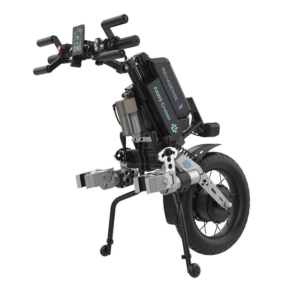 - Dieser starke Zusatzantrieb für manuelle Rollstühle ist vielseitig einsetzbar, sei es in der Stadt oder auf einem Waldweg.