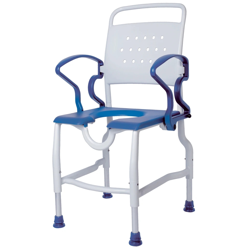 - Die abschwenkbaren Armlehnen ermöglichen einen leichten Ein- und Ausstieg und außerdem einen sicheren Transfer, z.B. vom Rollstuhl in den Duschstuhl.