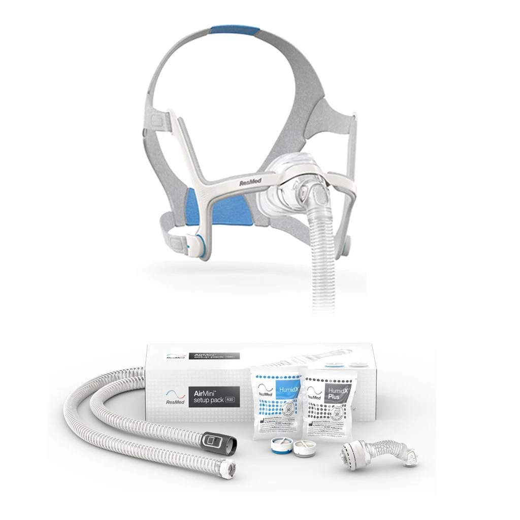 - AirMini kann mit den AirFit 20 Masken Airfit N20 und AirFit F20 sowie deer speziell entwickelten AirFit P10 für AirMini verwendet werden.