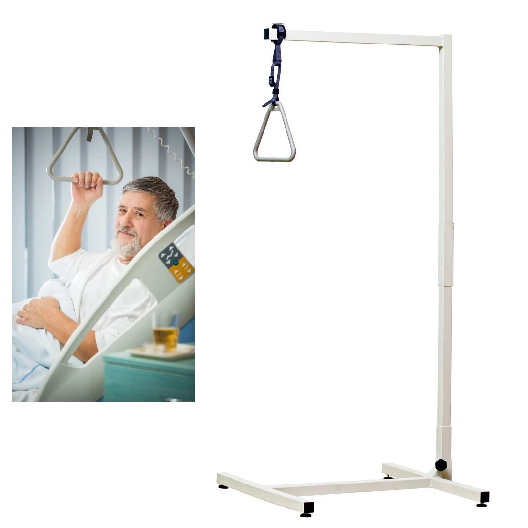- Dient zur Unterstützung von Personen beim Aufrichten im Bett aus der Liege- in die Sitzposition und zum Hochziehen oder Festhalten am Trapezgriff, um die Sitz- oder Liegeposition zu verändern.