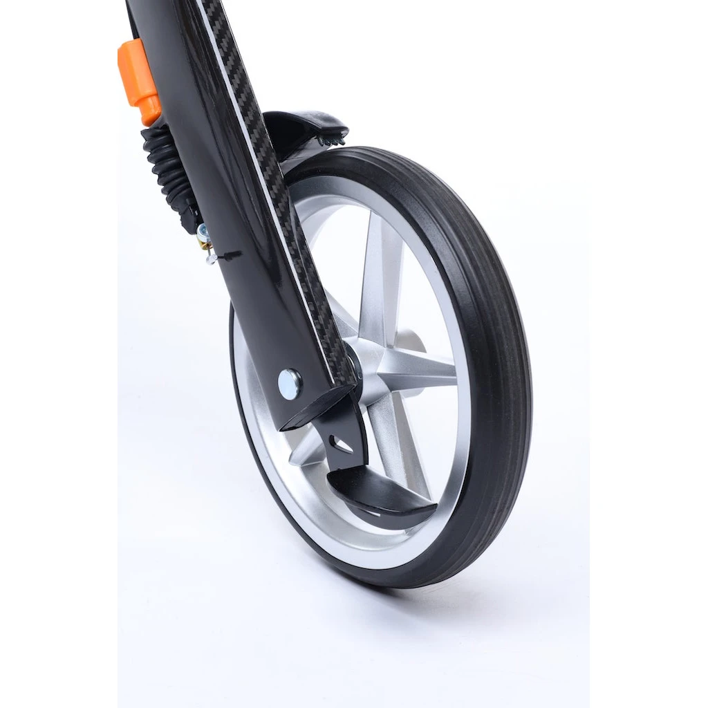 - Der Platzbedarf des CARBON in zusammengefaltetem Zustand ist sehr gering, sodass er fast überall verstaut werden kann, auch im Kofferraum eines PKW. Und nicht nur im PKW. Das geringe Gewicht kommt Ihnen auch zugute auf Reisen mit Bus, Bahn, Schiff und Flugzeug.