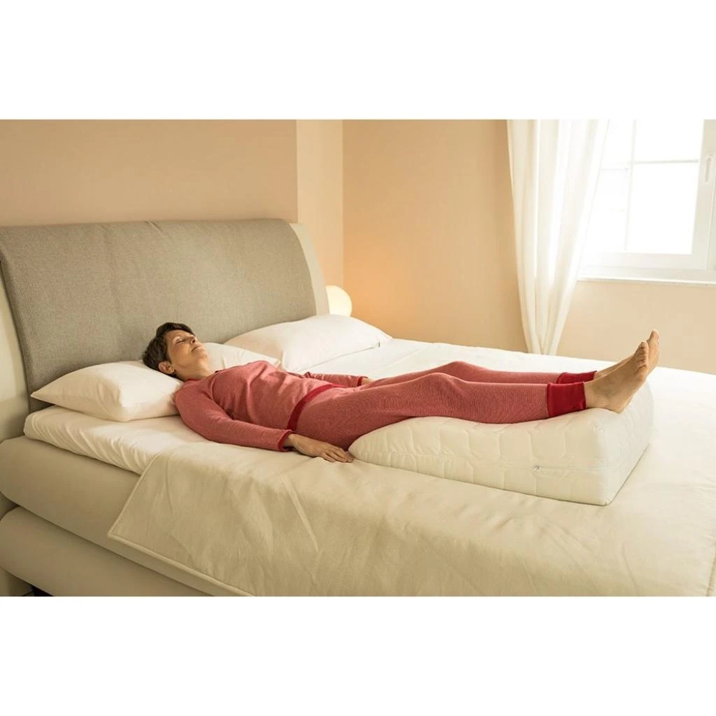 - Zusätzlich entlastet das Lagern auf dem Venenkissen in der Rückenlage den Lendenwirbelbereich und gleicht das Hohlkreuz aus.