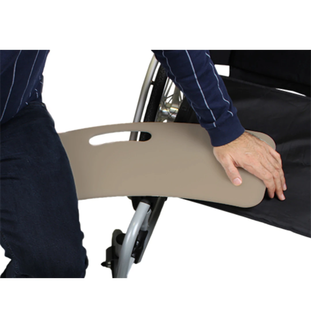 Das gebogene Rutschbrett erleichtert das Umsetzen von Personen z.B. von dem Rollstuhl ins Bett oder zu anderen Sitzgelegenheiten.