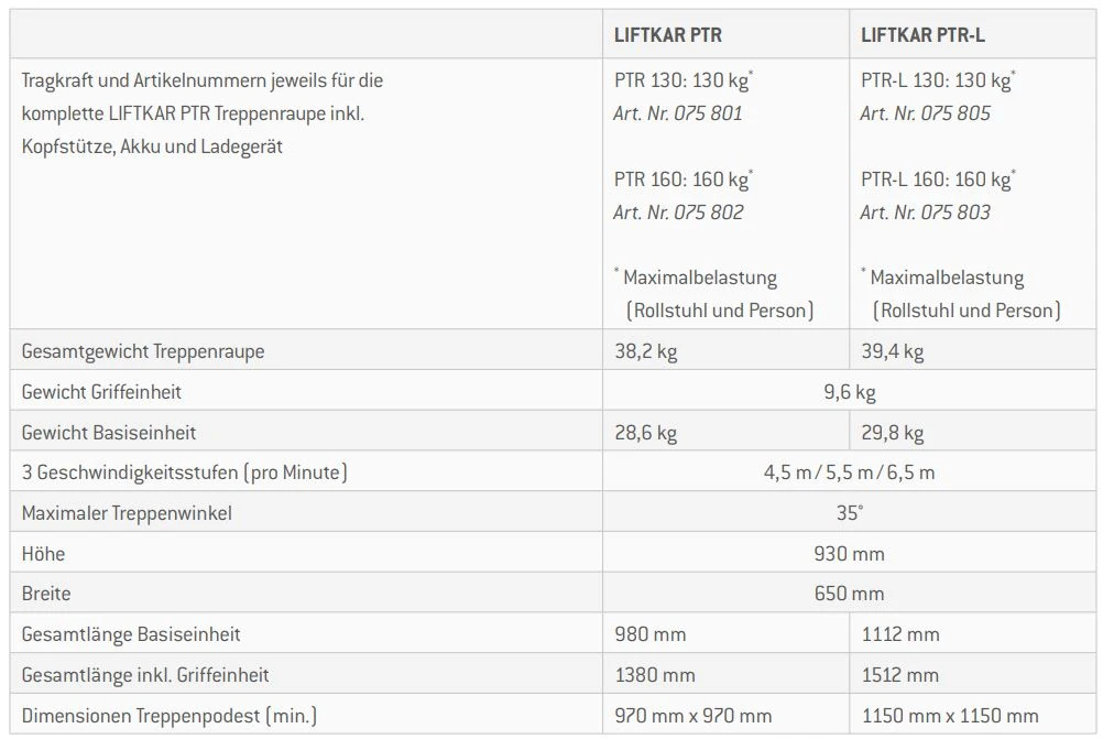 - Die LIFTKAR PTR Treppenraupe ist ein Gerät, das für die Überwindung von geraden Treppen entwickelt wurde
