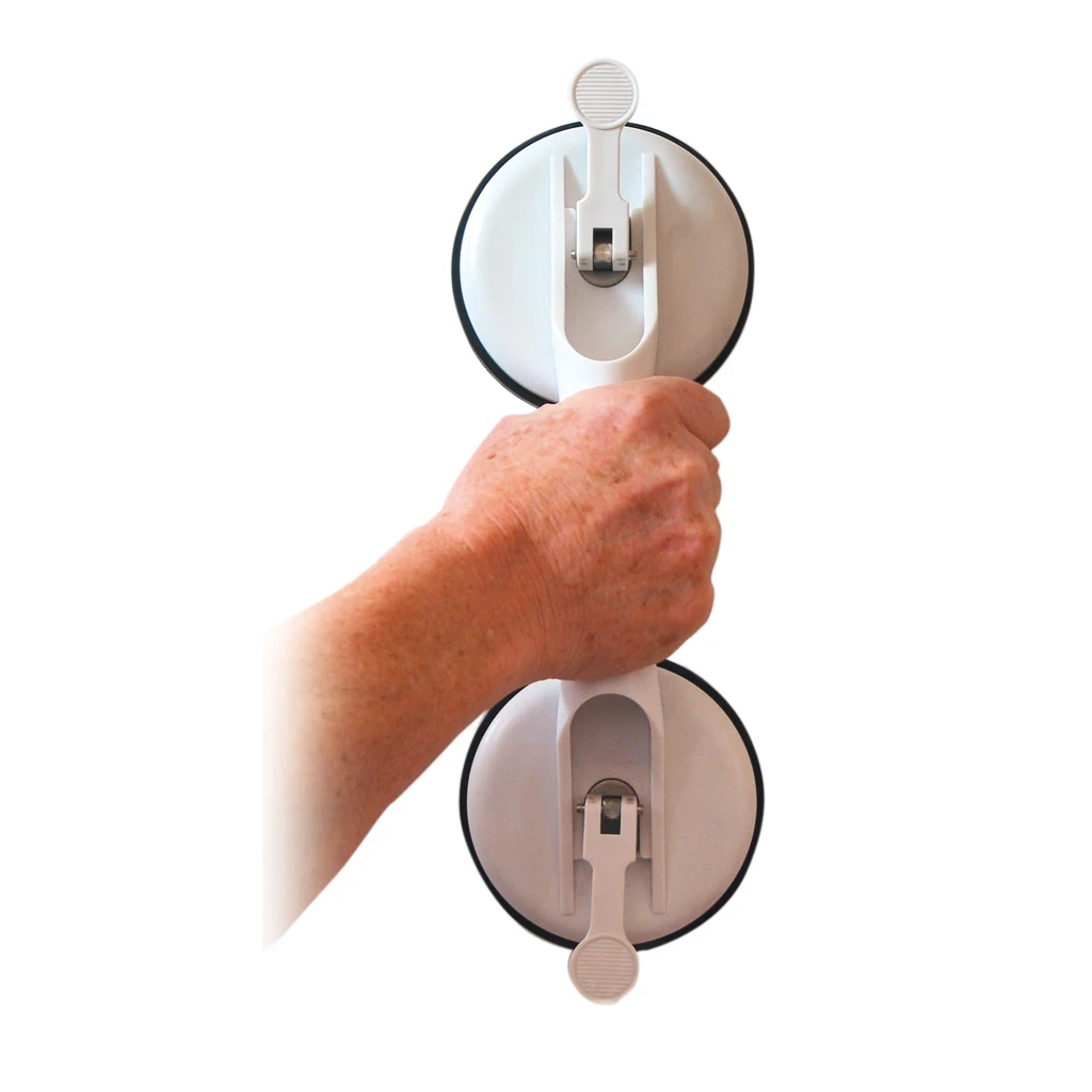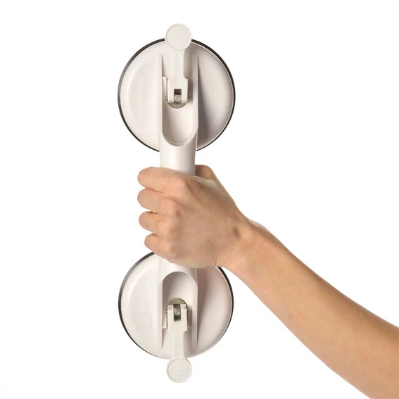 Sicherheitshinweise: Dieses Produkt wurde konzipiert um Unterstützung zu geben und nicht um das gesamte Gewicht einer Person zu halten oder tragen. Vor der Anbringung des Haltegriffes den Untergrund säubern und trocknen. Lesen Sie sorgfältig die Gebrauchsanweisung. Die ordnungsgemäße Haftung des Griffes muss vor jeder Benutzung überprüft werden. Falls der Griff nicht richtig haftet muss er vor jedem Gebrauch neu angebracht/fixiert werden. Saughaltegriff bei Defekt nicht verwenden!