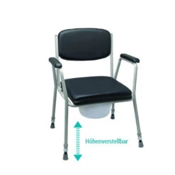 Toilettenstuhl Feststehend, HMV, Höhenverstellbar, Schwarz-grau, Belastbar Bis 120 Kg
