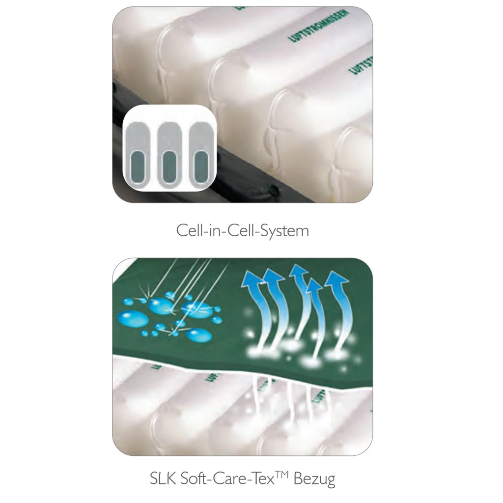 - Das SLK III ist ein hochzelliges Wechseldruck-Komplettersatzsystem mit 20 modular aufgebauten Luftzellen aus hochwertigem Polyurethan (PU) mit 3 statische Zellen im Kopfbereich