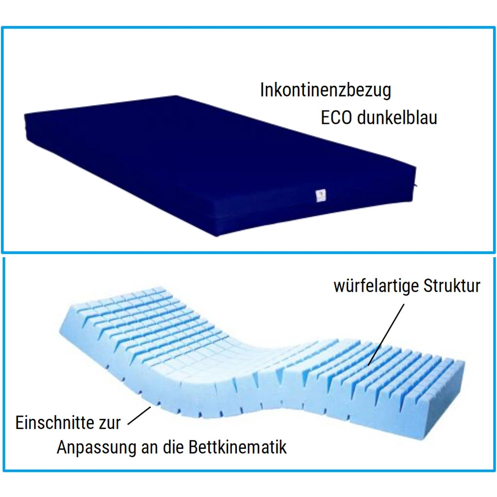 - Die SHP-CARFLEX ist standardmäßig mit einem dunkelblauen, nach Crib5 schwer entflammbaren Inkontinenzbezug ECO ausgestattet.
