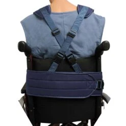 - Rückengurt um die Rollstuhl-Rückenlehne, welcher das Verrutschen des Gurts verhindert