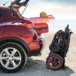 - Die Fliehkraftbremsen an den Hinterrädern bremsen bei einer Erhöhung der Gehgeschwindigkeit automatisch mit.
