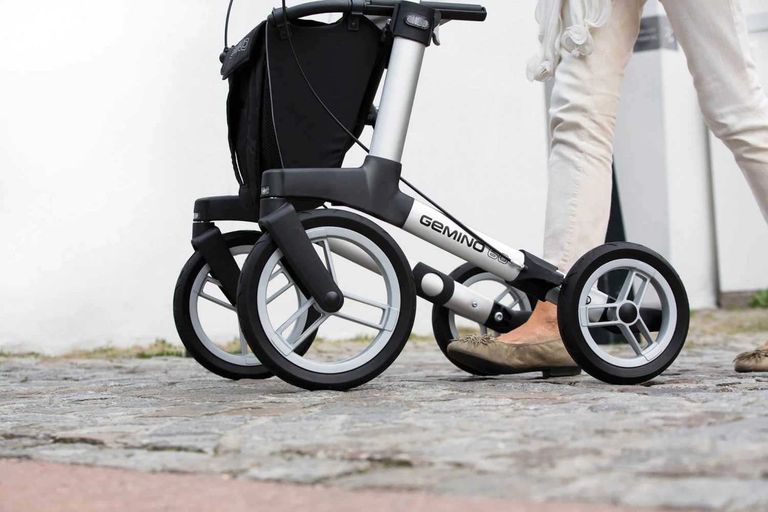 - Der Gemino 60 Walker begleitet Sie zuverlässig und gibt Ihnen dank seiner extragroßen, weichen Räder mehr Stabilität und Sicherheit beim Gehen in freier Natur.