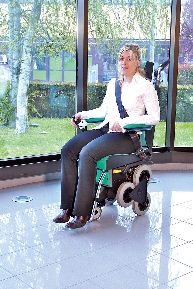 - Der Scoiattolo 2000 Treppensteiger von T.G.R. ist vorne mit zwei frei laufenden Rädern ausgestattet, die in der Ebene den Einsatz des Scoiattolo als gewöhnlichen Rollstuhl erlauben.