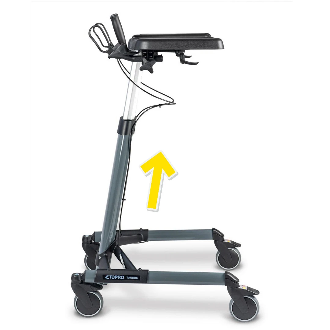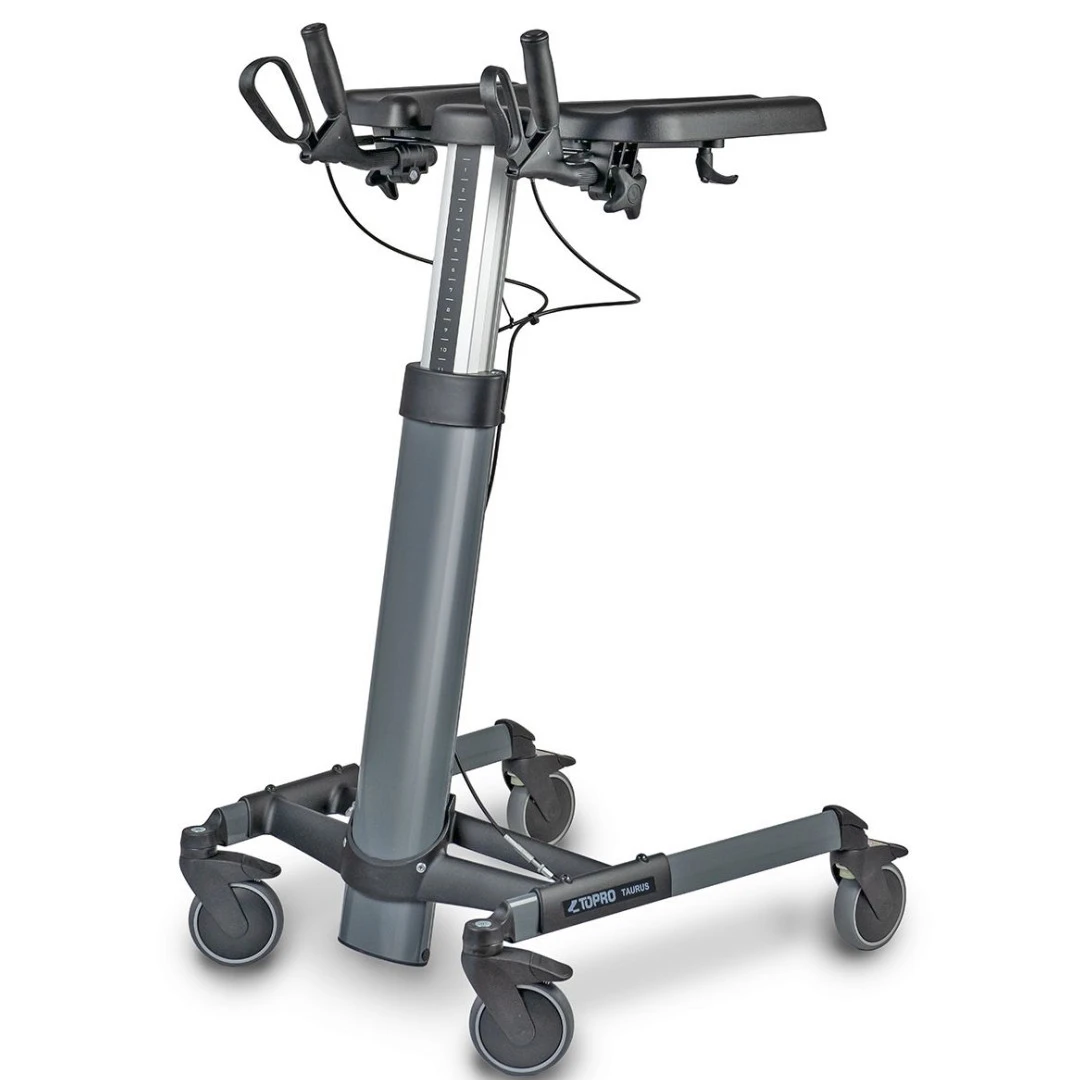 Der TOPRO Taurus ist eine vielseitige Gehhilfe, die durch ihre hydraulische Höhenverstellung für jeden Nutzer individuell einstellbar ist. Mit verstellbaren Unterarmauflagen, speziellen für den therapeutischen Einsatz optimierten Rädern und einer großen Palette Zubehör − die optimale Hilfe beim Gehen.