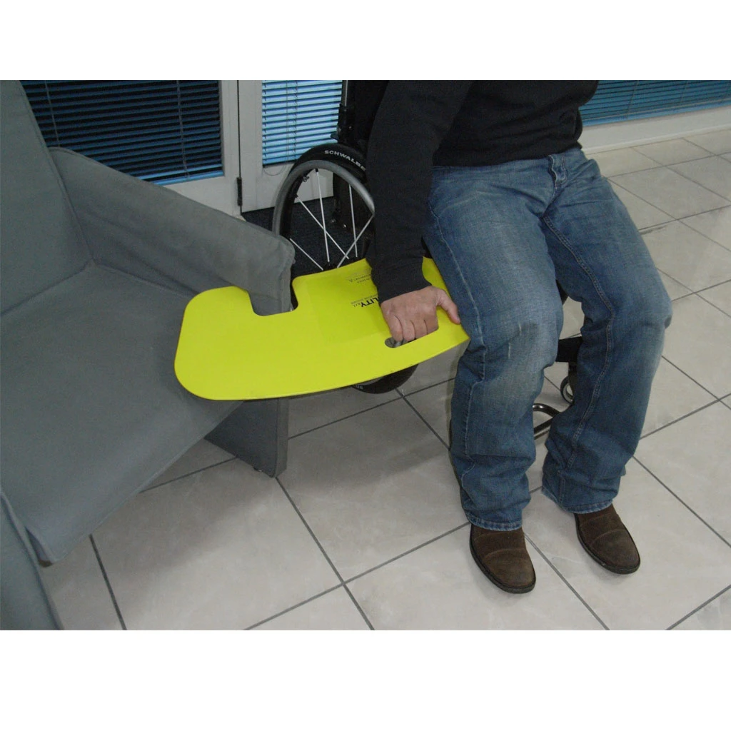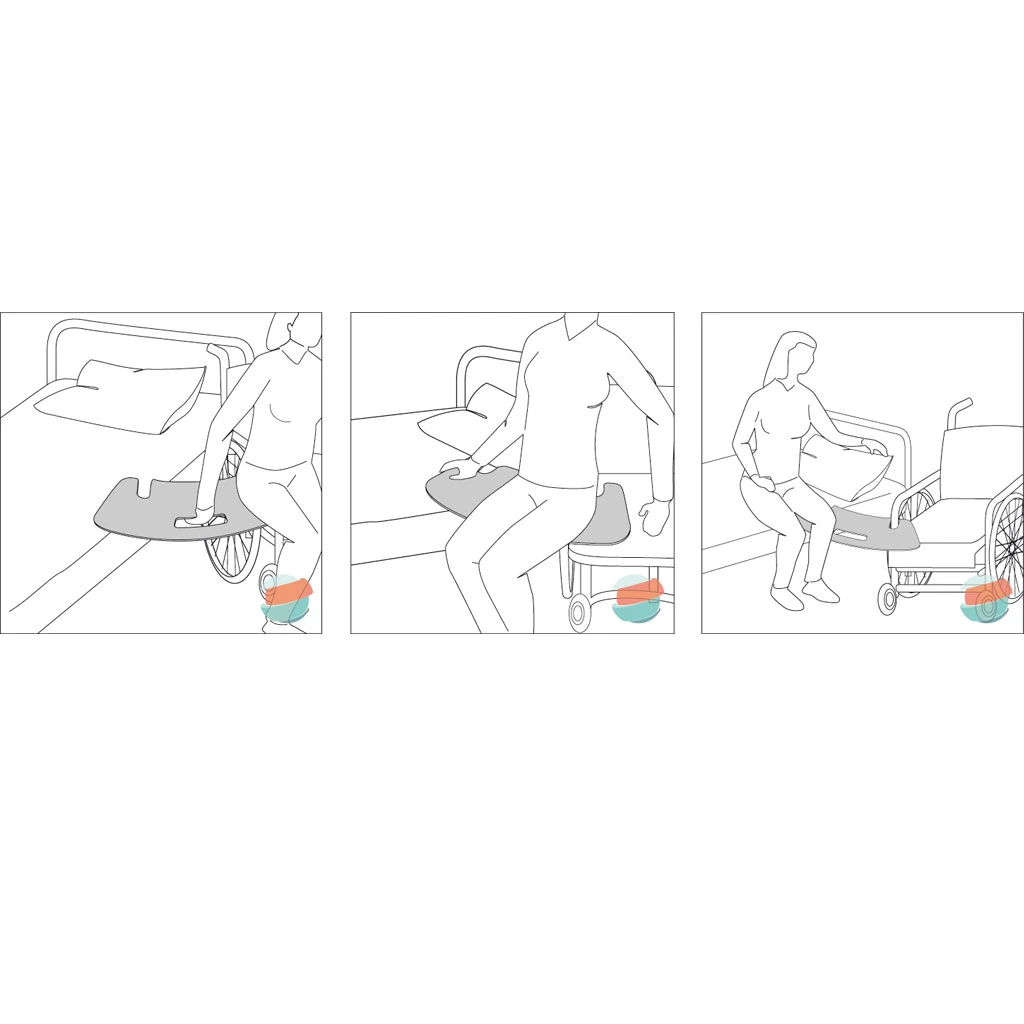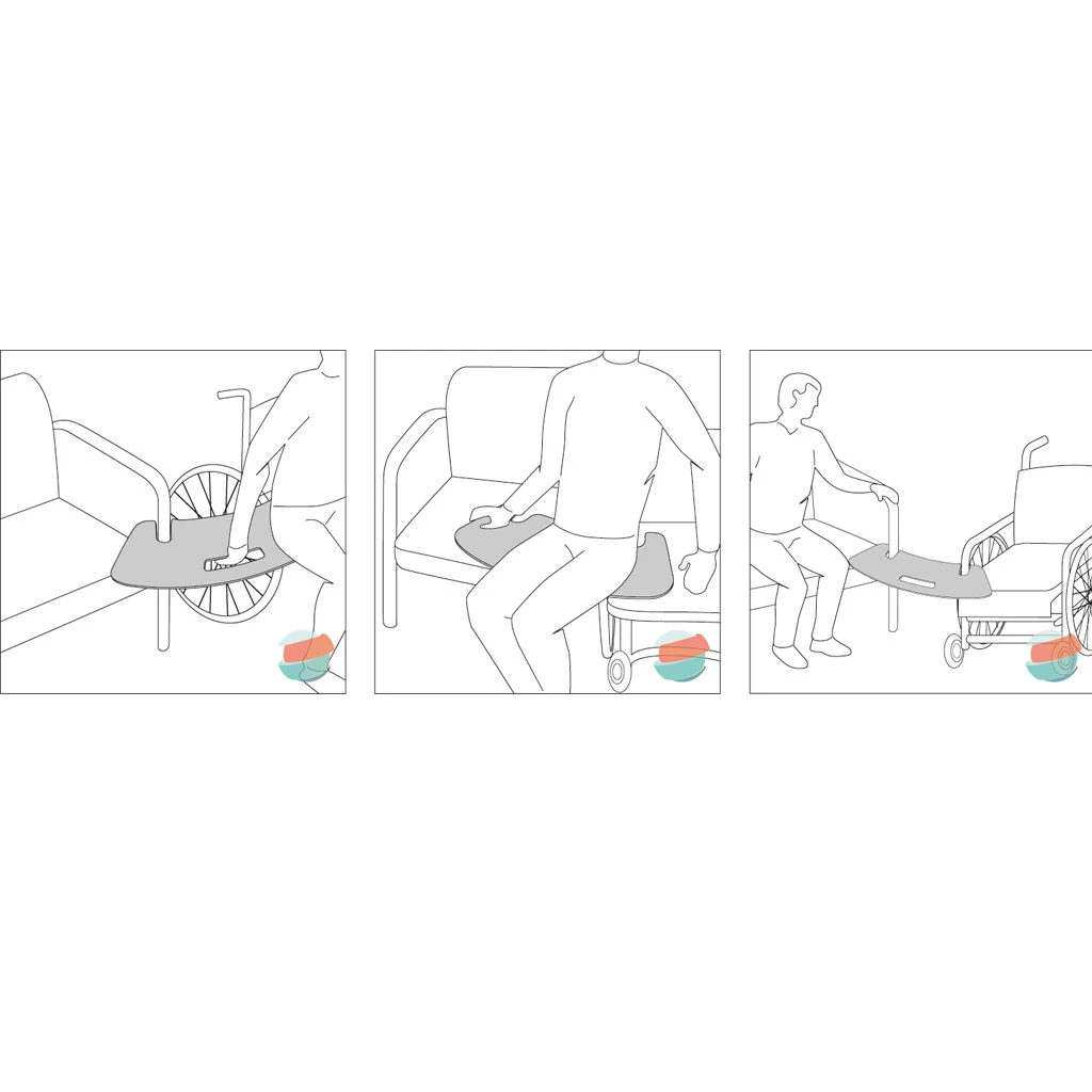 - Die Umsetzhilfe entlastet die Pflegeperson beim Transfer von bewegungseingeschränkten Personen z.B. vom Bett in den Rollstuhl und erhöht die Sicherheit.