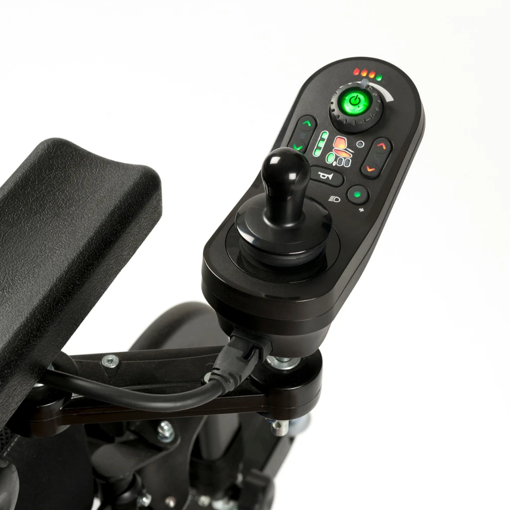 - Zusätzlich ist der Rollstuhl mit einer Vielzahl von Sicherheitsfunktionen ausgestattet, wie z.B. einem Geschwindigkeitsbegrenzer und automatischen Bremsen.